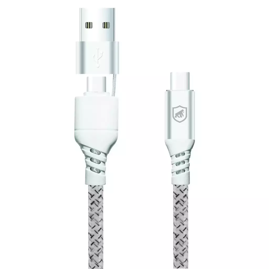 Além dos conectores Tipo C, o Cabo Thunder 2 em 1 também possui um adaptador integrado da porta USB padrão, garantindo compatibilidade com uma ampla gama de dispositivos.
